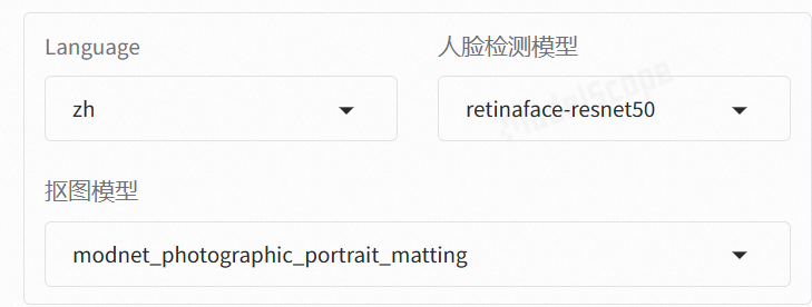 选择语言和人脸识别模型,抠图模型