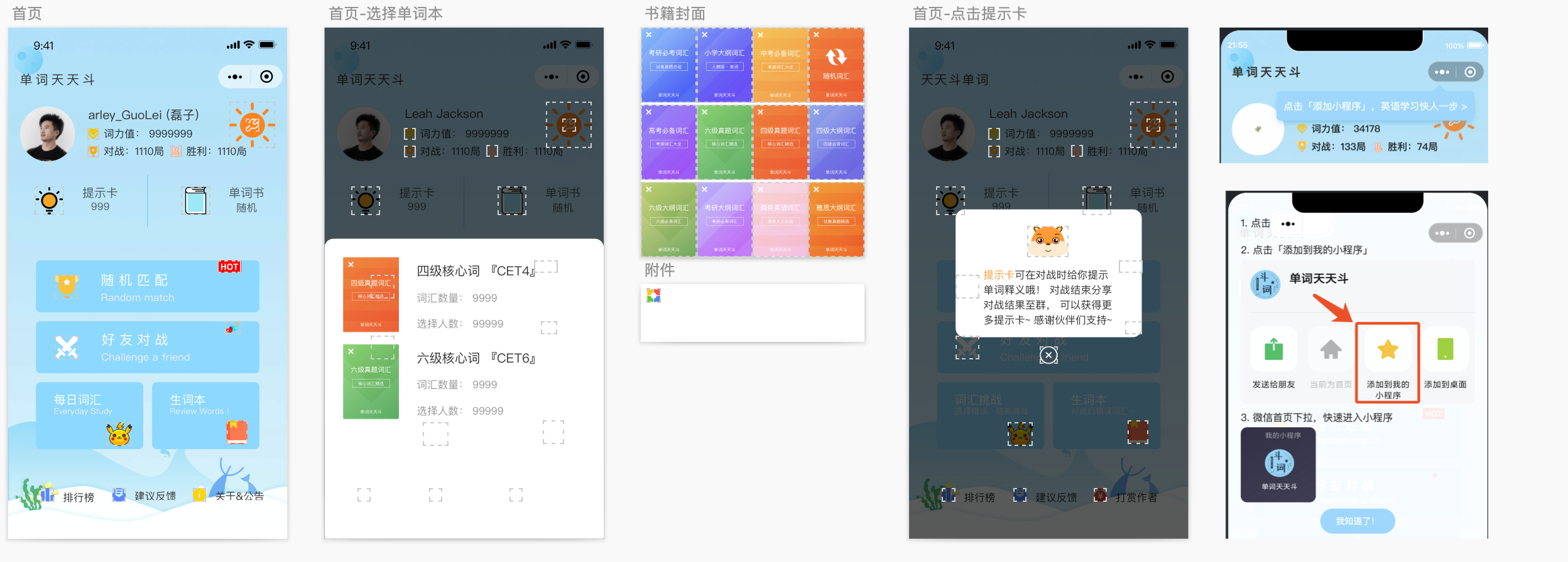 提示卡机制:答题过程中,用户可使用提示卡进行答题,当提示卡数目大于 0 时,点击提示卡则进行选择,得分机制和普通答题一致,但使用提示卡答题的单词需要自动加入生词本。
