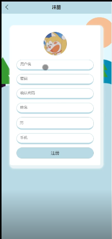 用户注册,用户在注册页面能过填写用户名,密码,确认密码,姓名,性别,手机等信息进行注册操作;如图5-3所示。