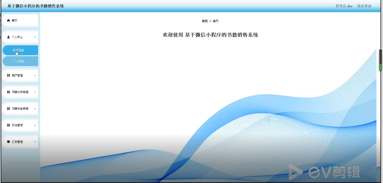 (2)管理员界面:管理员可以对首页,个人中心,用户管理,书籍分类管理,书籍信息管理,系统管理,订单管理等功能进行相应的操作;
