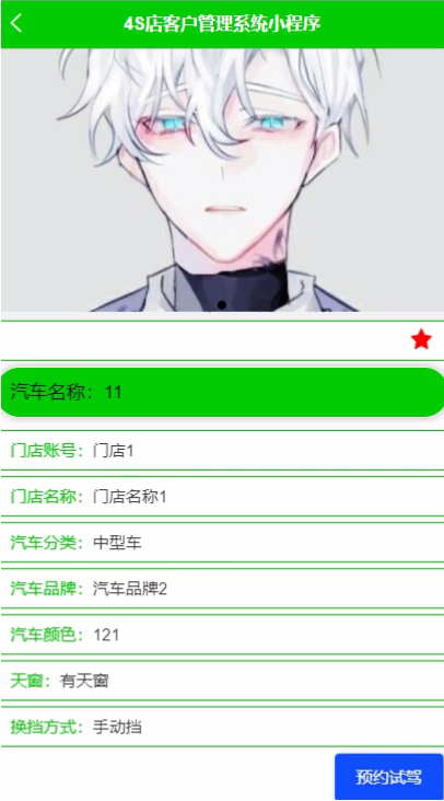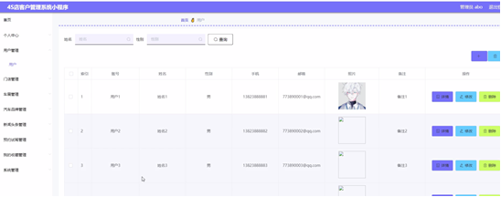 4S店客户管理系统中的功能模块主要是实现管理员服务端;首页、个人中心、用户管理、门店管理、车展管理、汽车品牌管理、新闻头条管理、预约试驾管理、我的收藏管理、系统管理,用户客户端:首页、车展、新闻头条、我的。门店客户端:首页、车展、新闻头条、我的经过认真细致的研究,精心准备和规划,最后测试成功,系统可以正常使用。分析功能调整与4S店客户管理系统实现的实际需求相结合,讨论了微信开发者技术与后台结合java语言和mysql数据库开发4S店客户管理系统的使用。
