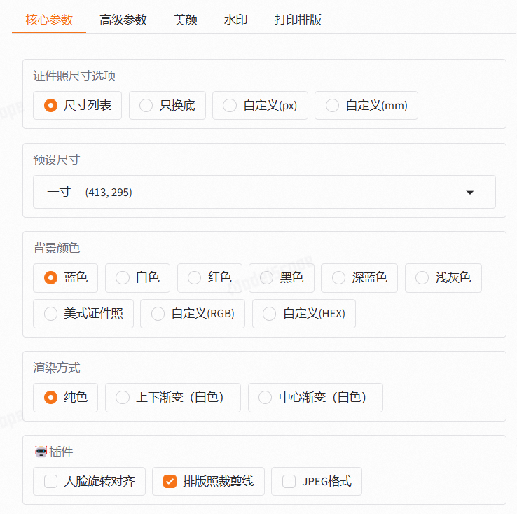 根据不同尺寸规格生成不同的标准证件照、六寸排版照