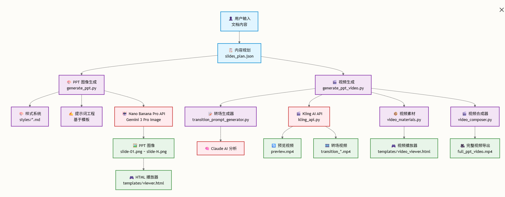 它能 自动从文案生成 PPT + 动效视频 + 高级视觉风格,只要一条命令就搞定!