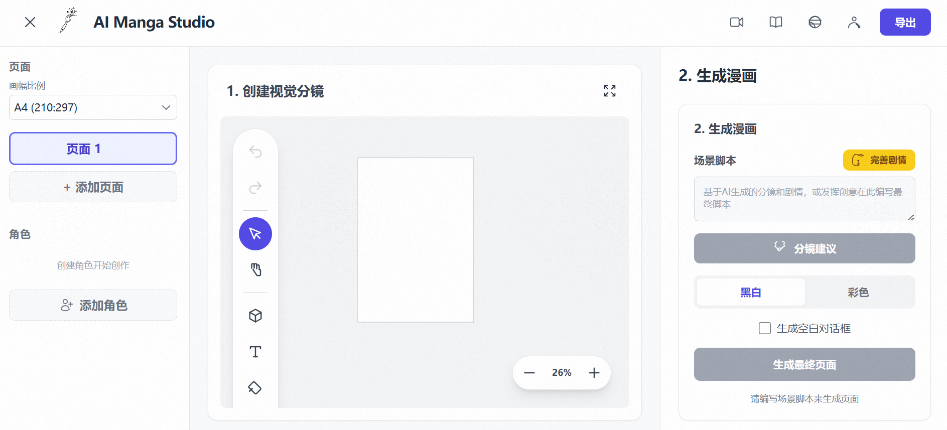 ✔ 自动设计分镜排版(镜头切换 + 对话框)