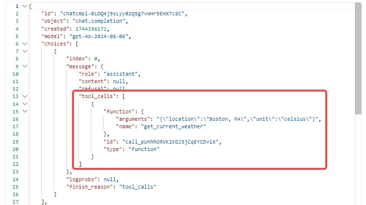 gpt-4o 调用工具的命令(JSON 格式)